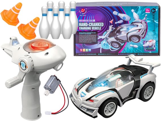 Zasada działaniaMontujemy zestaw zgodnie z szczegółową, obrazkową instrukcją montażu dołączoną do opakowania. Następnie łączymy pilot z autkiem za pomocą przewodu i kręcimy korbką. Następuje ładowanie akumulatora. W kolejnym kroku odłączamy auto, odłączamy przewód i przesuwamy włącznik w pozycję ON. Nasze autko jest gotowe do jazdy - po położeniu na powierzchni - pomknie do przodu. Ustaw kręgle i zagraj z przyjaciółmi. Sprawdźcie kto strąci ich więcej :) |