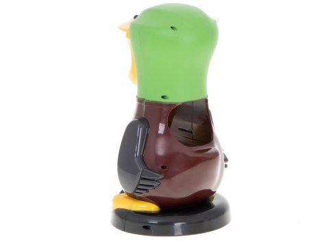 Kiedy pocisk uderzy w język kaczki, zabawka odtwarza charakterystyczny dźwięk.