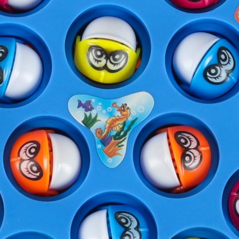 Koło z rybkami kręci się w rytm wesołej muzyki. Kolorowe pojemniczki na złowione rybki są wyjmowane.