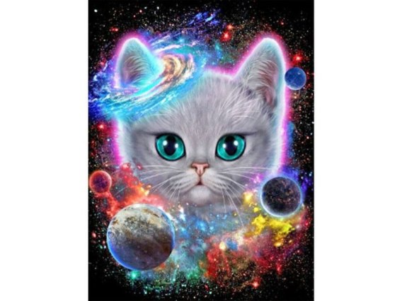 Haft Diamentowy, Obraz, Mozaika Diamentowa Diamond Painting, KOSMICZNY KOT 30x40cm