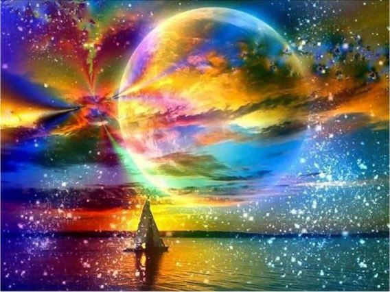 Haft Diamentowy, Obraz, Mozaika Diamentowa Diamond Painting, TĘCZOWY KSIĘŻYC 40x30cm