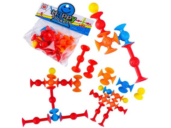 Silikonowe przyssawki to zabawka do samodzielnego zaprojektowania i zbudowania. Zestaw składa się z wielu silikonowych elementów - co pozwala na dowolne budowanie wszystkiego co wymyśli dziecko. Zabawka, która przemieni dziecko w małego architekta, pobudzi wyobraźnię i pomoże rozwinąć zdolności konstruowania. Przyssawki to niezwykłe klocki, które można łączyć zarówno ze sobą jak i z inną, gładką powierzchnią.