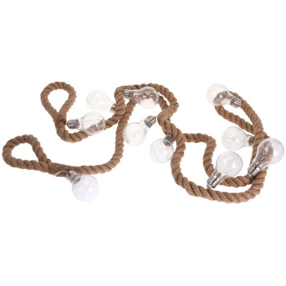 Girlanda z żarówkami umieszczonymi na parcianym sznurku. Prezentuje się bardzo efektownie, idealnie pasuje do każdego wnętrza, również w stylu boho. Zestaw jest lekki, poręczny i łatwy w utrzymaniu czystości. Wyprodukowano zgodnie z europejskimi standardami.