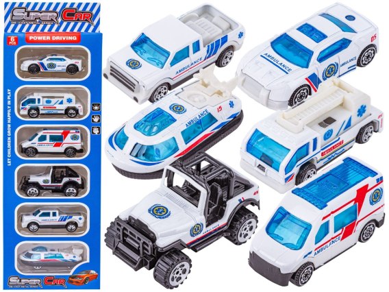 Każdy pojazd z kolekcji jest wyjątkowy. Zestaw zawiera oczywiście ambulans ratunkowy ale dodatkowo znajdziemy tutaj ciężarówkę z ruchomą drabiną, jeepa, pojazd terenowy (pick-up), samochód osobowy a także - uwaga - poduszkowiec.
