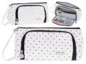 PIÓRNIK SZKOLNY PODWÓJNY SASZETKA KOSMETYCZKA BIAŁY W KROPKI
