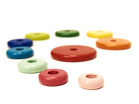 Nakładanie krążków na drążki pomaga rozwijać zdolności manualne oraz koordynację „ręka-oko".