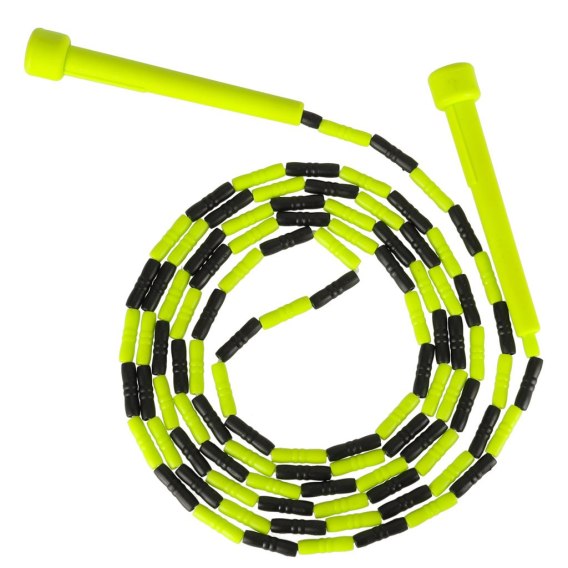 Skakanka ma długość 250 centymetrów, ale możesz ją dopasować do swojego wzrostu poprzez skrócenie jej. Wykonana z plastikowych koralików założonych na sznurek, nie tylko przyciąga wzrok swoim wyglądem, ale także jest dobrze wyważona, co sprawia, że każdy skok jest bardziej kontrolowany. Długie, ergonomiczne uchwyty zostały zaprojektowane z myślą o pewnym i wygodnym chwycie, dzięki czemu nawet intensywny trening staje się przyjemnością.