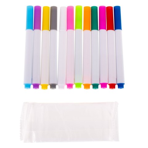 Do zestawu dołączonych jest 12 markerów kredowych, które zmywają się przy pomocy mokrej szmatki.