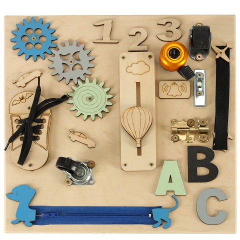 TABLICA MANIPULACYJNA DREWNIANA SENSORYCZNA 30X30CM