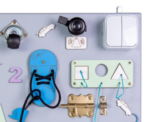 Ale czym dokładnie jest tablica manipulacyjna? To produkt, który posiada wiele różnorodnych elementów, najczęściej takich codziennego użytku - między innymi: gniazdko z wtyczką, włącznik światła, dzwonek rowerowy i wiele innych!