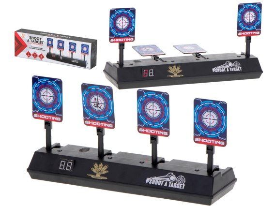 W tarczę można strzelać z pistoletów na piankowe strzałki. Posiada ona efekty świetlne i dźwiękowe uatrakcyjniające zabawę. Po trafieniu możemy usłyszeć dźwięk tłuczonego szkła lub oklaski. Dodatkowo na tarczy został umieszczony dwucyfrowy licznik punktów. Każdy cel po trafieniu kładzie się do tyłu. Po zestrzeleniu czterech tarcz otrzymujemy 1 punkt, a następnie wszystkie podnoszą się automatycznie do góry.