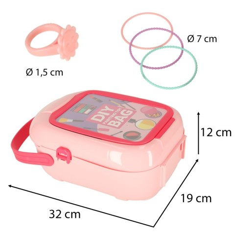 Piękna, plastikowa walizka mieści wiele skarbów, które ucieszą każdą małą damę lub przyszłego fryzjera.