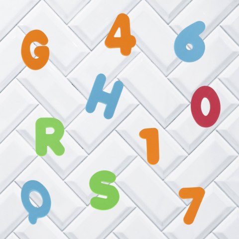 Kolorowe literki i cyferki zapewnią dziecku rozrywkę podczas kąpieli wodnych.