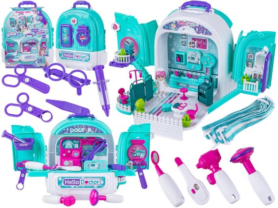 Zestaw Lekarski w Plecaku 3w1 Mały Doktor Walizka Plecak Domek Dla Lalek