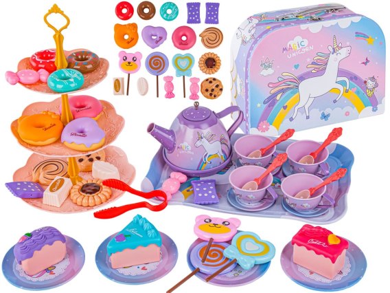 Tacka, filiżanki, talerzyki oraz czajniczek są metalowe, dzięki czemu są o wiele trwalsze od plastiku i na pewno długo posłużą.