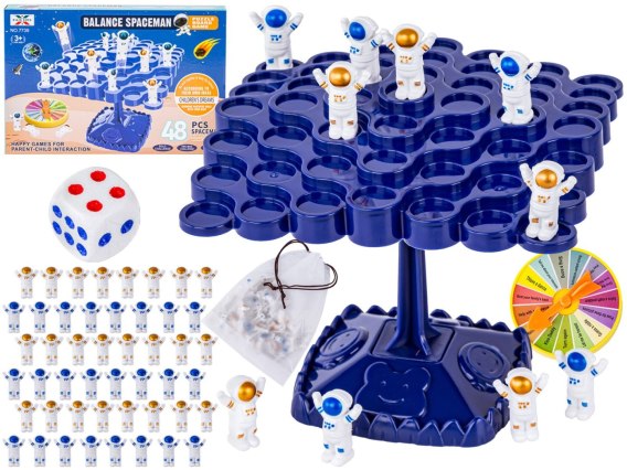 Zabawa zestawem jest bardzo prosta. Należy ułożyć taką ilość kosmonautów na planszy aby była ona zrównoważona.