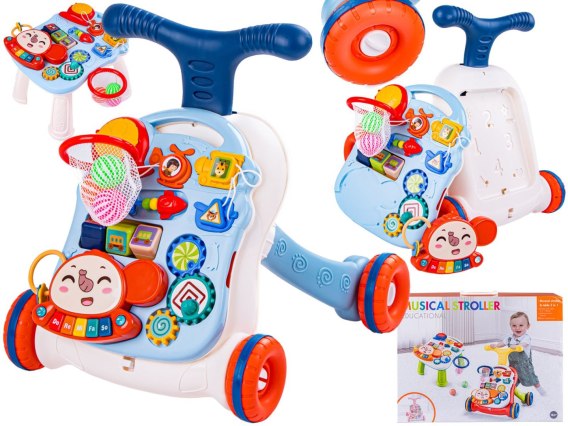 - Możliwość zamontowania kosza zarówno na stoliku, jak i do pchacza,