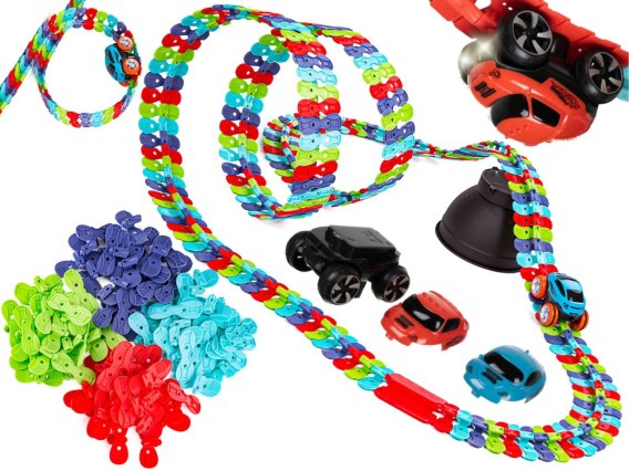 Ten zestaw to nie byle jaki zabawkowy tor wyścigowy. Jest kolorowy i niezwykle elastyczny.