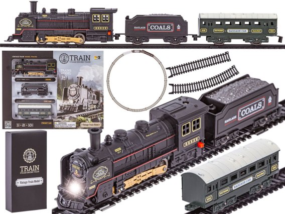Elektryczna Kolejka Lokomotywa - Parowóz + 2 Wagony, Węglarka + Pasażerski