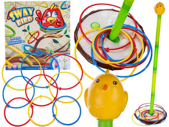 - Zadaniem graczy jest wrzucenie wszystkich obręczy na pałąk z ptaszkiem,