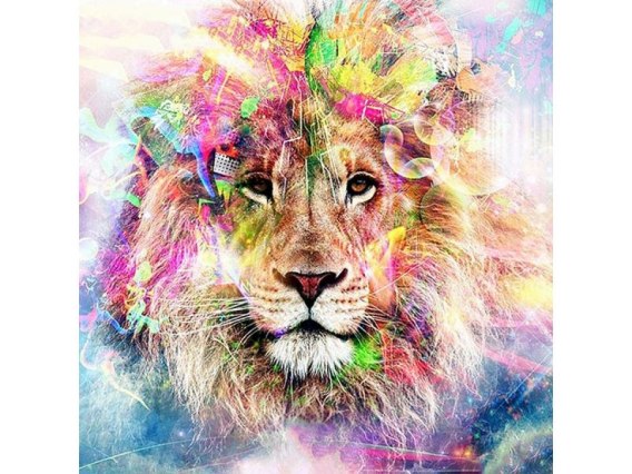 Haft Diamentowy, Obraz, Mozaika Diamentowa Diamond Painting, TĘCZOWY LEW 40x40cm