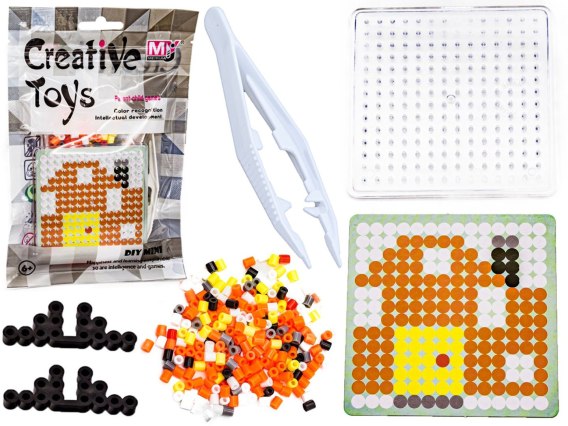 Jest to zabawka do samodzielnego zbudowania. Zestaw składa się z wielu kolorowych, plastikowych koralików oraz szablonu z konkretnym wzorem. Super zestaw zapewni każdemu dziecku mnóstwo wesołej zabawy.