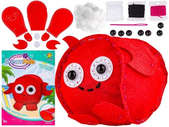 Maskotka DIY krab to zabawka, którą dzieci szyją samodzielnie a co za tym idzie rozwija: