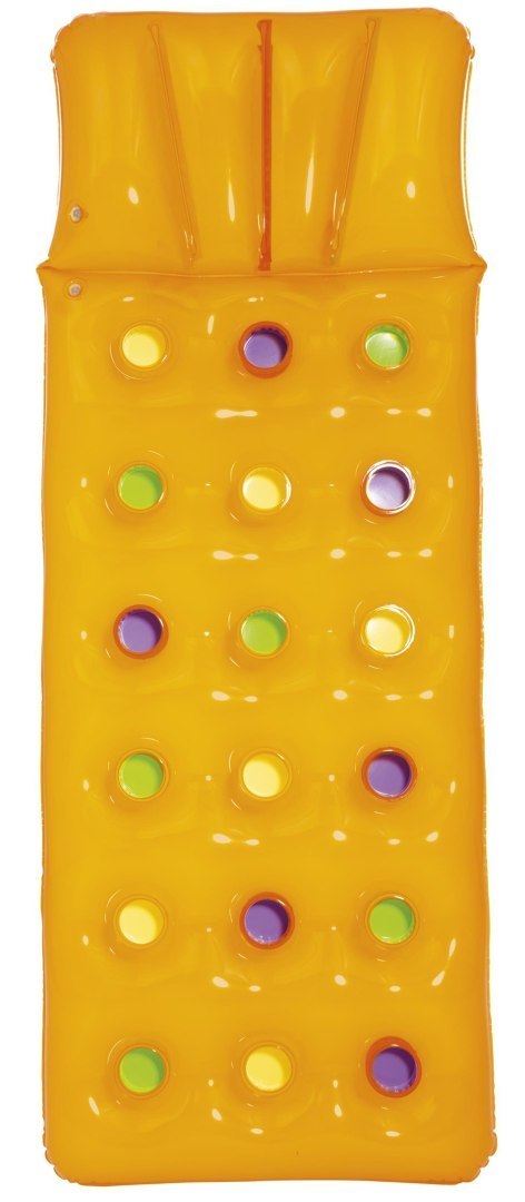 Leżak posiada oddzielną nadmuchiwaną poduszkę i część do leżenia, co zapewnia większy komfort. Jego wymiary po napompowaniu wynoszą 188 x 71 cm, co czyni go bardzo popularnym modelem. Leżak jest dostępny w atrakcyjnym pomarańczowym kolorze.
