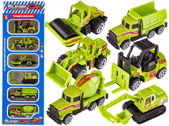 Każdy pojazd z kolekcji jest wyjątkowy. Jak na każdym placu budowy tak i w naszym zestawie nie zabrakło koparki, spycha, wywrotki, walca, betoniarki czy wózka widłowego.