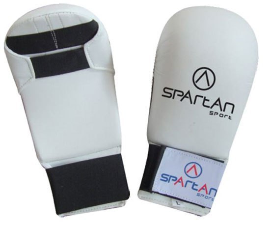 Rękawice ochraniacze na dłonie do treningów karate firmy Spartan wykonano z poliuratenu, dzięki czemu są wytrzymałe na uszkodzenia podczas ćwiczeń. W środku zastosowano lekką, wysokiej jakości piankę amortyzującą uderzenia. Gumowy mankiet przy nadgarstku zapinany na rzep pozawala idealnie dopasować rękawice do dłoni, utrzymując je na miejscu, a podwójne mocowanie za pomocą gumek daje stabilność i komfort użytkowania. Ochraniacze od wewnątrz są odkryte. Świetnie leżą na dłoniach dzięki dobremu wyprofilowaniu.
