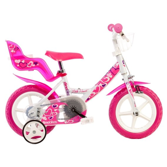 Rowerek Rower Dziecięcy dla Dzieci Dziewczynki z Bocznymi Kółkami DINO 12"