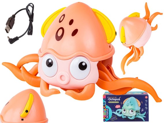 Uciekająca Pełzająca Ośmiornica, Interaktywna Zabawka, Świeci, Gra melodie Robot POMARAŃCZOWA