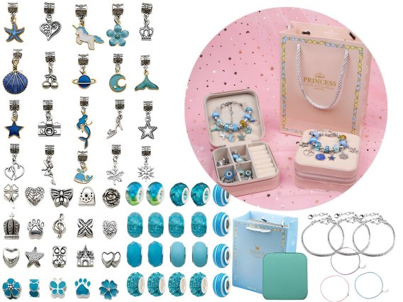 Zestaw Do Tworzenia Robienia Biżuterii, Bransoletek, Charmsy, Zawieszki, Koraliki ODCIENIE NIEBIESKIEGO + Etui