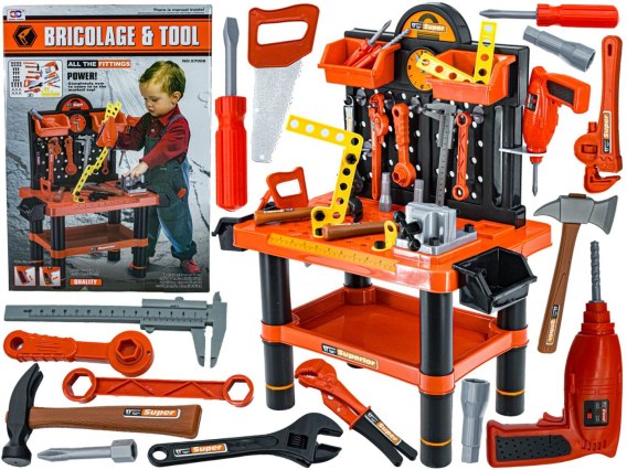 Porządek musi byćZabawka posiada solidny stolik z dodatkową podstawką i pojemniczkami na drobiazgi oraz wygodną tablicę narzędziową z dziurkami i uchwytami, które pozwalają zachować porządek wśród dużej liczby przeróżnych narzędzi. |