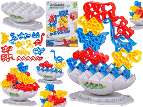 Zręcznościowa Gra Rodzinna, Balansująca Wieża Klocki Zwierzątka Kolorowa Układanka